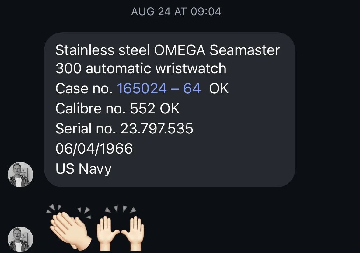 It was not long before I was able to learn more about the watch’s history. A friend with a connection at Omega Switzerland was able to confirm that the watch had been delivered in 1966 to the United States Navy, most likely through a military PX.