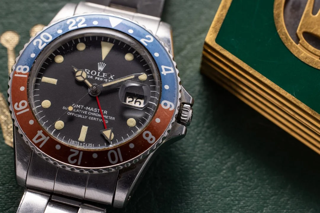 Gold sports Rolex occupy a specific intersection of rarity and wearability that the market continues to underappreciate. The yellow gold Submariner and GMT references are among the most compelling pieces in the entire Rolex catalog — produced in small numbers, rarely preserved well. Stone dials, lacquer “Stella” dials, and original bracelets in unworn condition are the benchmark.
